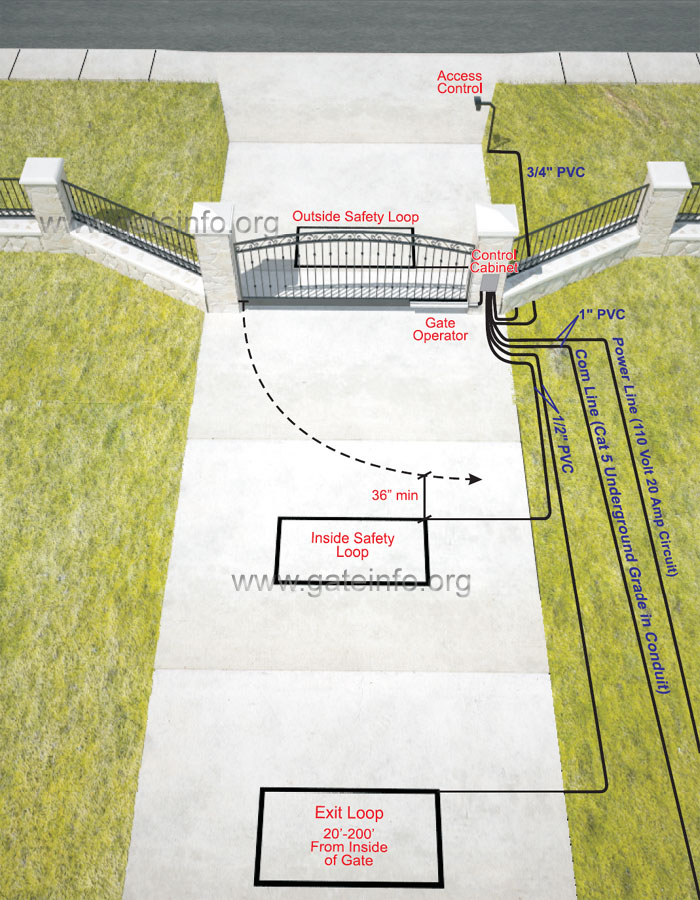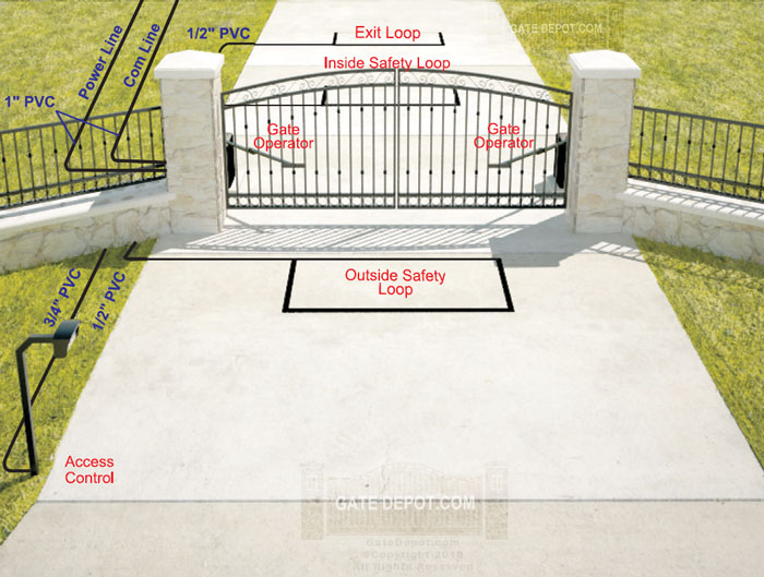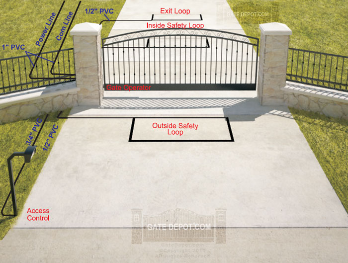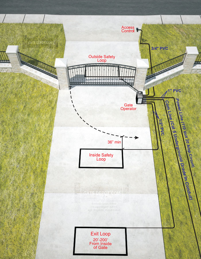Please note that these diagrams are supplied as a courtesy and Gate Depot is not responsible or liable for how they are used. Please consult with professional help if you are not sure of how to install your gate. Gate Depot will provide free consulting on any information contained in this library in conjunction with sales of our gates and automation equipment.